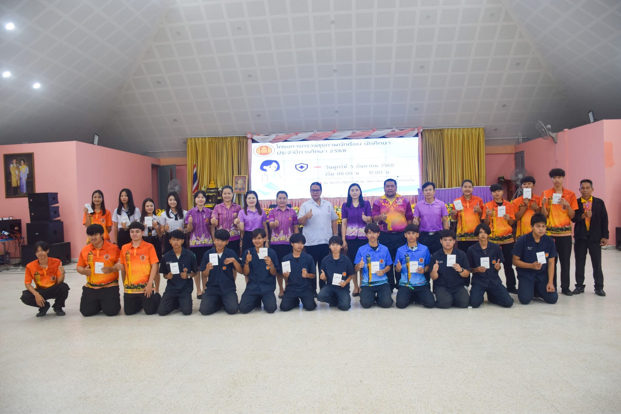 งานสวัสดิการนักเรียน นักศึกษา วิทยาลัยการอาชีพร้อยเอ็ด วันที่ 5 กันยายน 2568 นายสรพงษ์ แสนกล้า ผู้อำนวยการวิทยาลัยการอาชีพร้อยเอ็ด มอบหมายให้นางสาวร่มเกล้า สาลี ครูชำนาญการพิเศษ รักษาการในตำแหน่งผู้อำนวยการวิทยาลัยการอาชีพร้อยเอ็ด พร้อมด้วยงานสวัสดิการนักเรียน นักศึกษา คณะครู นำนักเรียน เข้าร่วมโครงการตรวจสุขภาพนักเรียน นักศึกษา ประจำปีการศึกษา 2568 ในวันศุกร์ ที่ 5 กันยายน 2568 ณ หอประชุมปาริชาต วิทยาลัยการอาชีพร้อยเอ็ด