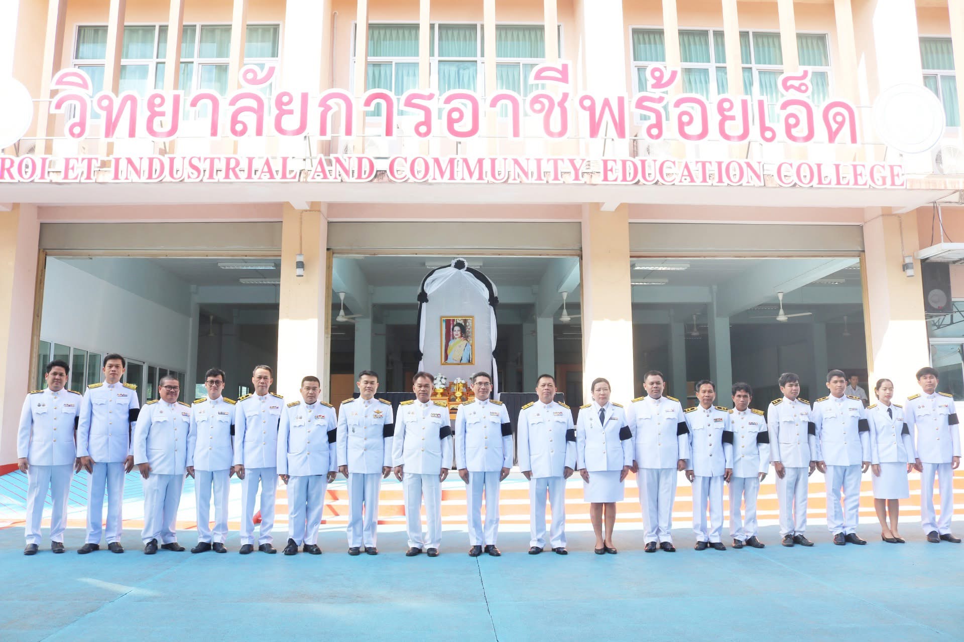 วันที่ 20 พฤศจิกายน 2568 นายสรพงษ์ แสนกล้า ผู้อำนวยการวิทยาลัยการอาชีพร้อยเอ็ด พร้อมด้วยคณะผู้บริหาร ครู บุคลากรทางการศึกษา และนักเรียน นักศึกษาวิทยาลัยการอาชีพร้อยเอ็ด ร่วมพิธีน้อมรำลึกในพระมหากรุณาธิคุณสมเด็จพระนางเจ้าสิริกิต์ พระบรมราชินีนาถ พระบรมราชชนนีพันปีหลวง และร่วมแสดงความอาลัยยืนสงบนิ่งเป็นเวลา 93 วินาที เพื่อน้อมรำลึกในพระมหากรุณาธิคุณ อันหาที่สุดมิได้ ณ อาคารอเนกประสงค์ (หน้าเสาธง) วิทยาลัยการอาชีพร้อยเอ็ด รูปภาพเพิ่มเติม https://drive.google.com/drive/folders/1K9jweTYodFbYGo7hUXLb1CbOU1ly7c1Y?usp=sharing |