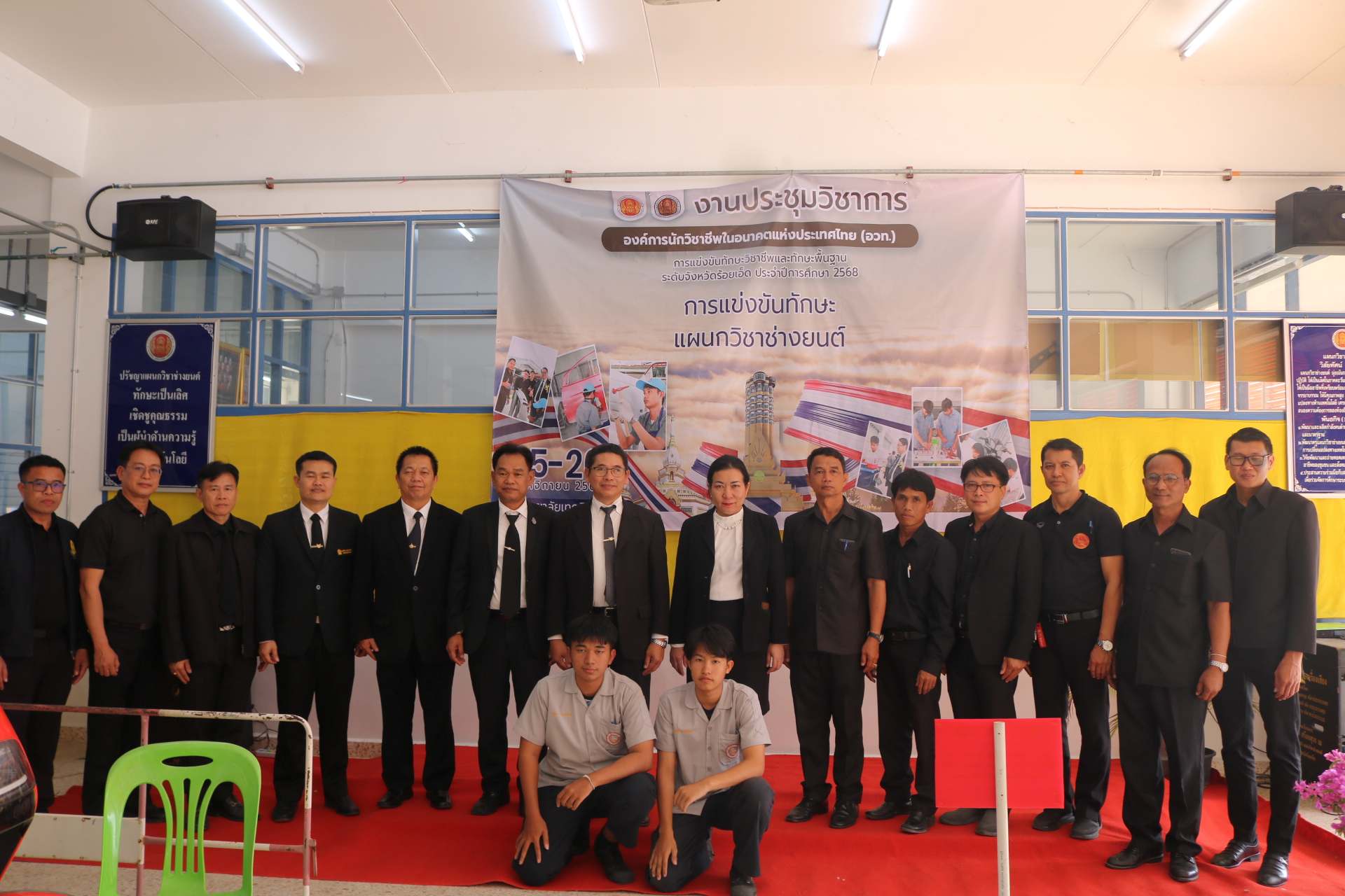 ร้อมด้วยคณะผู้บริหารวิทยาลัยการอาชีพร้อยเอ็ด ร่วมให้กำลังใจ คณะกรรมการตัดสิน และนักเรียน นักศึกษาในการแข่งขันทักษะวิชาชีพ ระดับจังหวัดร้อยเอ็ด ประจำปีการศึกษา 2568 ณ วิทยาลัยเทคนิคร้อยเอ็ดและวิทยาลัยอาชีวศึกษาร้อยเอ็ด