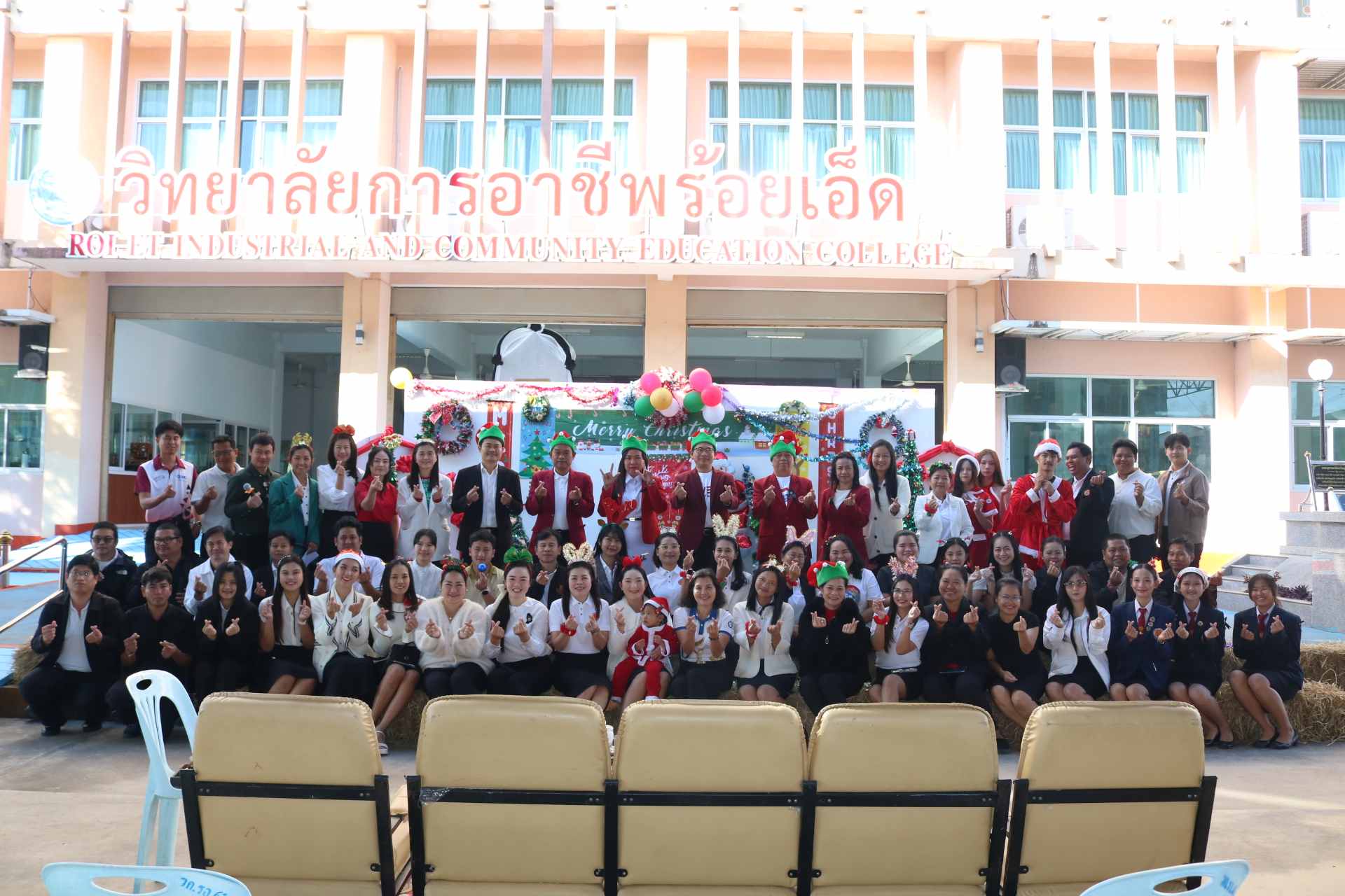 วันที่ 26 ธันวาคม 2568 นายสรพงษ์ แสนกล้า ผู้อำนวยการวิทยาลัยการอาชีพร้อยเอ็ด เป็นประธานในพิธีเปิดกิจกรรมวันคริสต์มาส (Christmas Day) พร้อมด้วยคณะผู้บริหาร ครู บุคลากรทางการศึกษา และนักเรียน นักศึกษา เข้าร่วมกิจกรรมในครั้งนี้ พร้อมกับการแจกของขวัญ ความสนุกจากกิจกรรมหลากหลาย และการแบ่งปันรอยยิ้ม ในวันศุกร์ ที่ 26 ธันวาคม 2568 ณ อาคารอเนกประสงค์ วิทยาลัยการอาชีพร้อยเอ็ด