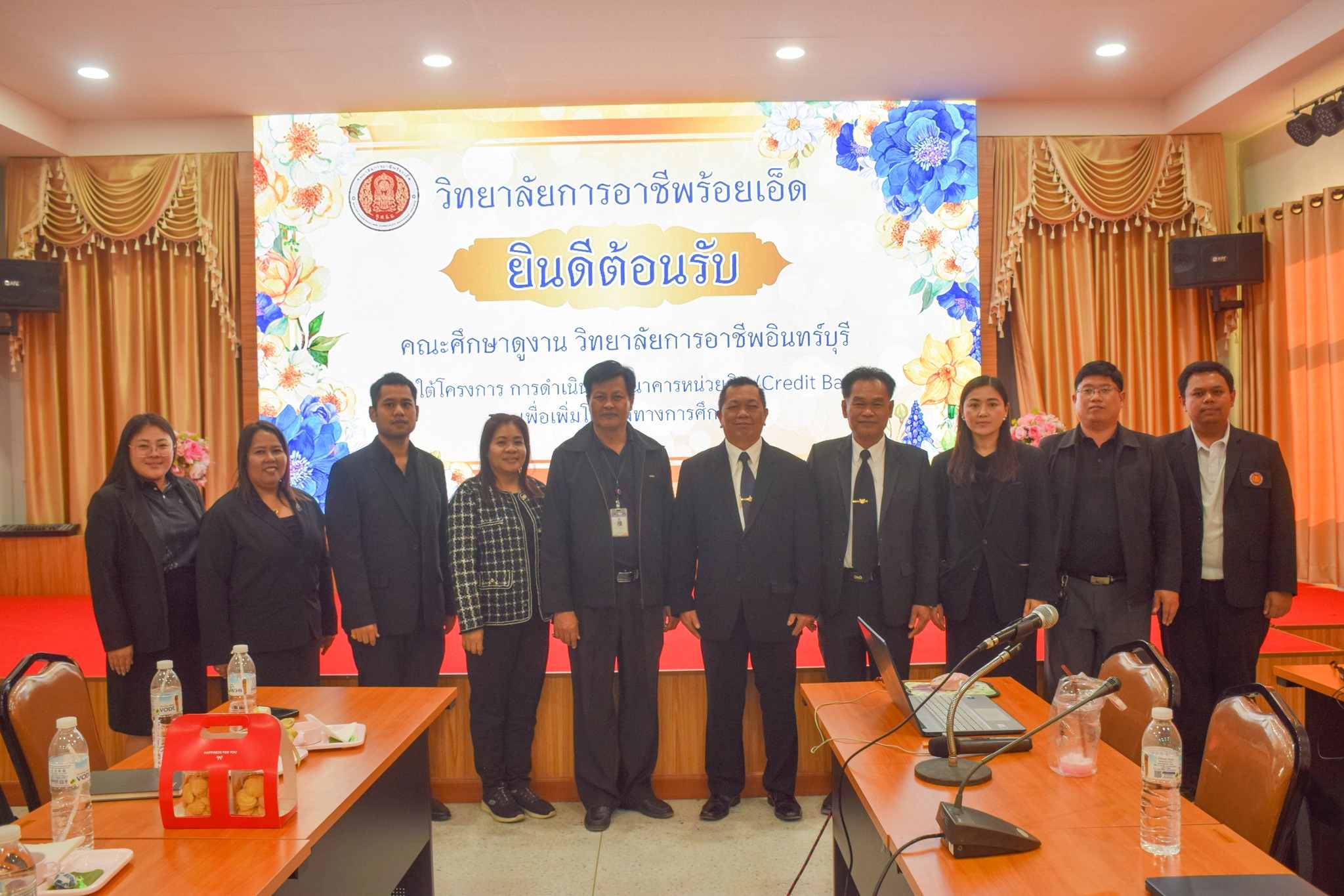 รักษาการในตำแหน่งผู้อำนวยการวิทยาลัยการอาชีพร้อยเอ็ด พร้อมด้วยคณะผู้บริหาร คณะครู กล่าวต้อนรับคณะศึกษาดูงานจากวิทยาลัยการอาชีพอินทร์บุรี นำโดย นายอนุชิด อรรถานิธี ผู้อำนวยการวิทยาลัยการอาชีพอินทร์บุรี พร้อมคณะ เข้าศึกษาดูงานเกี่ยวกับ “ธนาคารหน่วยกิต Credit Bank” เพื่อพัฒนาคุณภาพการศึกษาด้านการจัดการเรียนการสอน และนำความรู้มาพัฒนาการจัดการเรียนการสอนของครูผู้สอนใน สาขาวิชาที่เกี่ยวข้อง ในวันศุกร์ ที่ 9 มกราคม 2569 ณ ห้องประชุมชั้น 1 อาคารเทคโนโลยีบัณฑิต วิทยาลัยการอาชีพร้อยเอ็ด