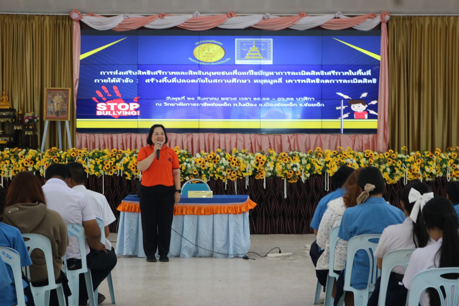 วันที่ 20 สิงหาคม 2568 นายสรพงษ์ แสนกล้า ผู้อำนวยการวิทยาลัยการอาชีพร้อยเอ็ด มอบหมายให้ นางสาวมยุรี อามาตย์มนตรี รองผู้อำนวยการฝ่ายพัฒนากิจการนักเรียน นักศึกษา ร่วมเป็นเกียรติในพิธีเปิดโครงการส่งเสริมสิทธิเสรีภาพและสิทธิมนุษยชนเพื่อแก้ไขปัญหาการละเมิดสิทธิเสรีภาพในพื้นที่จังหวัดร้อยเอ็ด ในวันพุธ ที่ 20 สิงหาคม 2568 ณ หอประชุมปาริชาต วิทยาลัยการอาชีพร้อยเอ็ด
