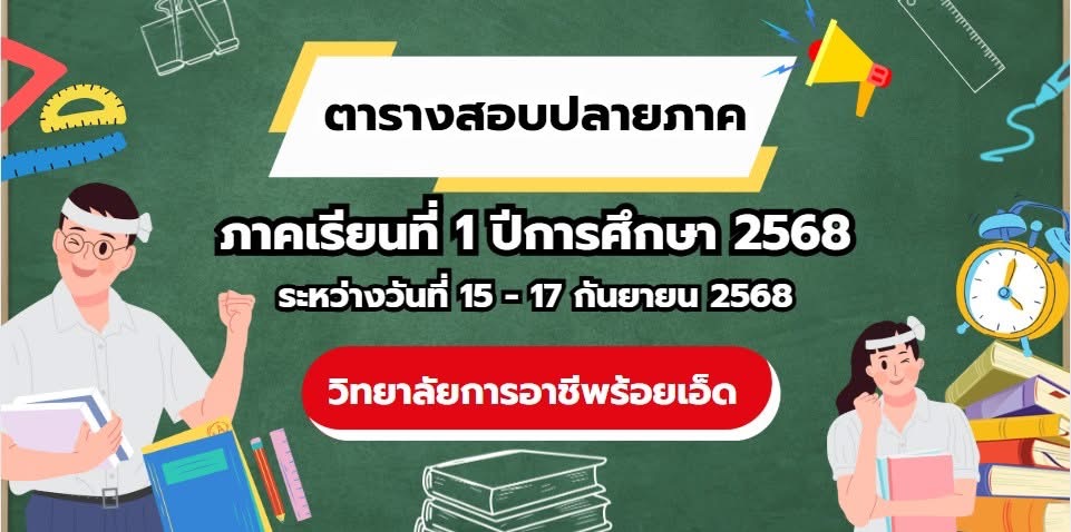 ???? วิทยาลัยการอาชีพร้อยเอ็ด ประกาศแจ้งตารางสอบปลายภาค ภาคเรียนที่ 1 ปีการศึกษา 2568