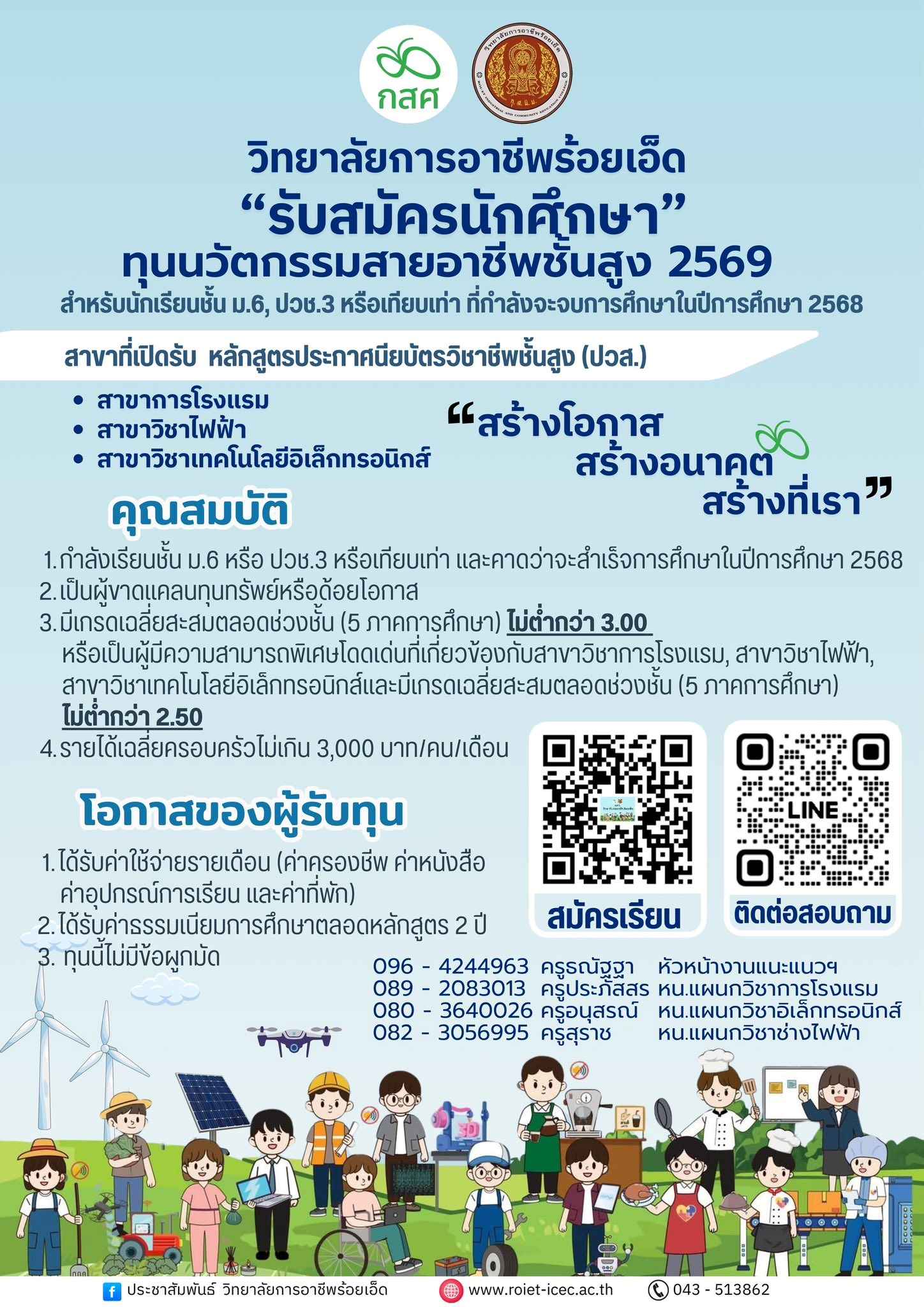วิทยาลัยการอาชีพร้อยเอ็ด เปิดรับสมัครคัดเลือกนักศึกษาทุนนวัตกรรมสายอาชีพชั้นสูง ปี 2569
