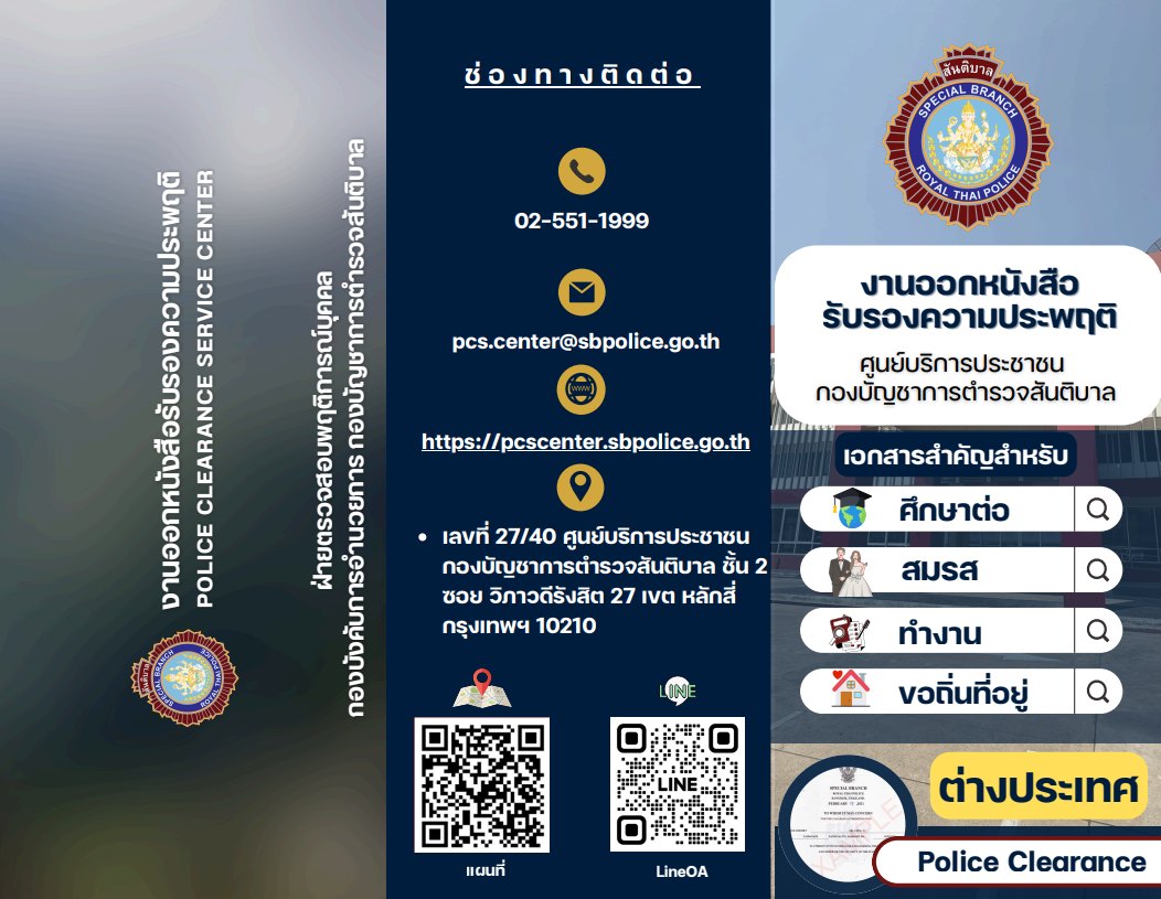 ประชาสัมพันธ์การขอหนังสือรับรองความประพฤติ (Police Clearance)