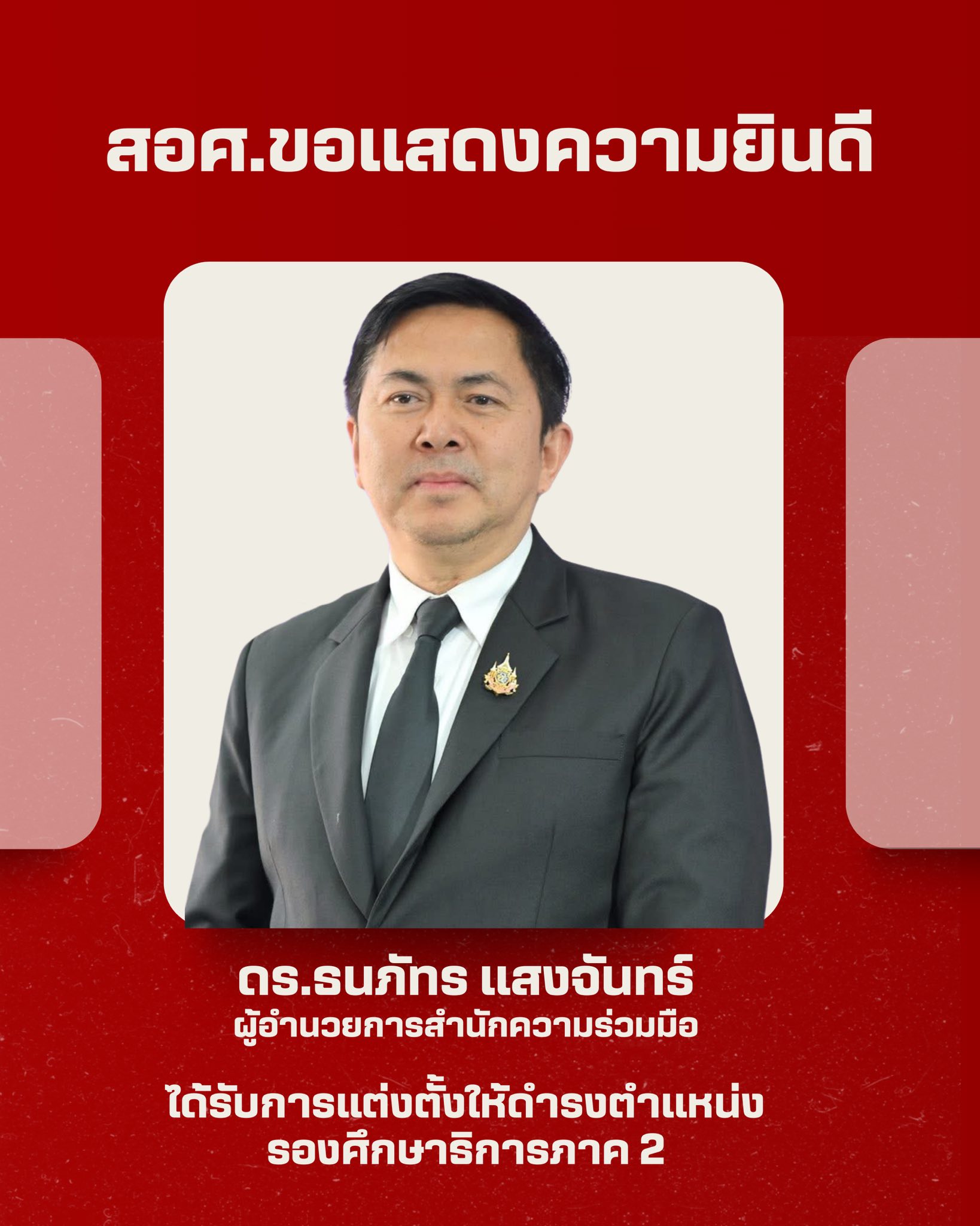 วิทยาลัยการอาชีพร้อยเอ็ด ขอแสดงความยินดีกับดร.ธนภัทร แสงจันทร์ ผู้อำนวยการสำนักความร่วมมือ